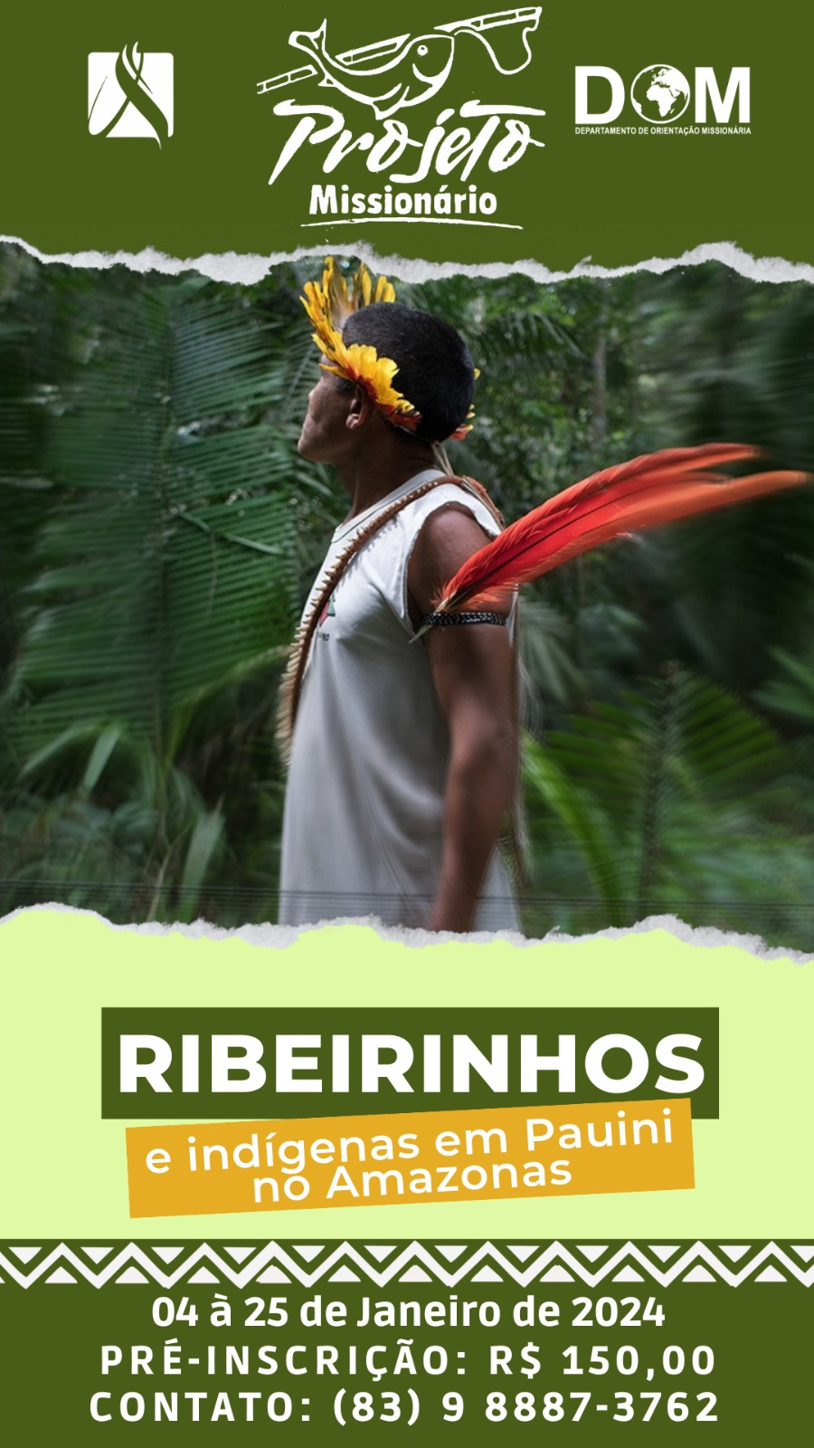 Apoio ao Campo Missionário de Pauini/AM e seus trabalhos missionários junto as Comunidades de Vila Dedé, Vila Kacuri e Praia de Humaitá, ao longo da extremidade do Rio Purus. Estamos lançando a pré-inscrição do Projeto Missionário da Aliança entre os RIBEIRINHOS E INDÍGENAS, na cidade de Pauini/AM entre os dias 04 a 25 de Janeiro/2024, promovido pelo Departamento de Orientação Missionária (DOM) da Aliança das Igrejas Evangélicas Congregacionais do Brasil.